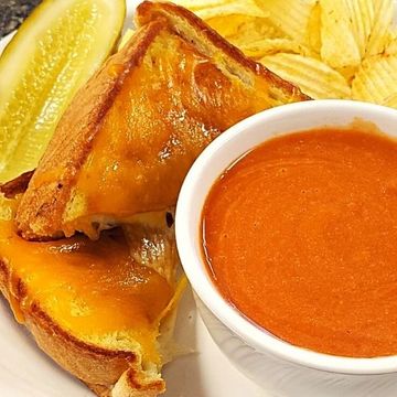 American, Swiss and Cheddar Cheese served on your choice of Bread with a Cup of creamy Tomato Soup.