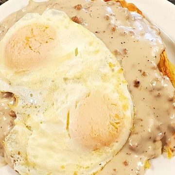 Grilled Chicken, Feta Cheese with fresh Spinach and Mushrooms. Served with Hash Browns and Toast.